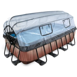 EXIT TOYS EXIT Wood Pool 400x200x100cm Met Afdekking, Sand Filter En Warmtepomp, Bruin