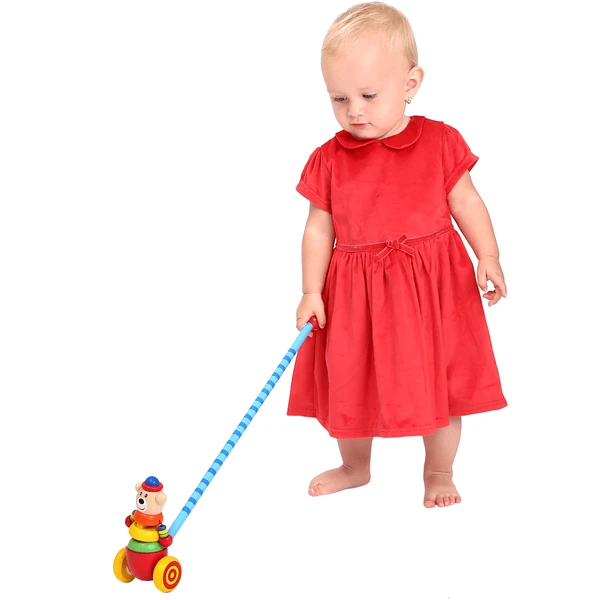 - Kleurrijke en vrolijke beer beweegt als het kind hem voor zich uit duwt