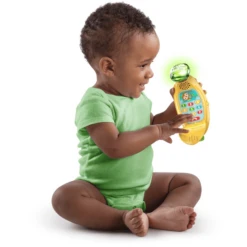 Het activiteitenspeelgoed “Babblin’ Banana” van B right Starts zal uw peuter boeien als hij mee brabbelt op de muziek. Druk op de knoppen om muziek en lichtjes te activeren, en hoor meer dan 100 melodietjes, zinnetjes en gekke geluidjes! Zo leert uw baby spelenderwijs cijfers, kleuren en woordenschat in 3 talen: Engels, Spaans en Frans. Dit muzikale on-the-go speeltje zal uw baby absoluut vermaken vanaf 6 maanden en ouder.