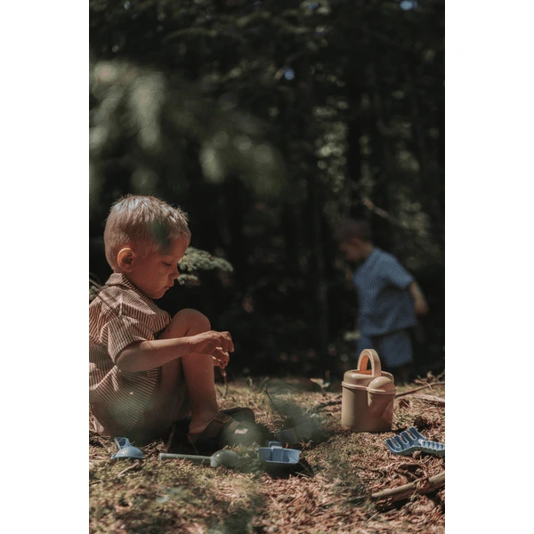 - 1 gieter, 1 Sand vorm, 1 schop en 1 hark