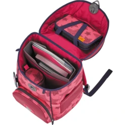 - Dankzij het in hoogte verstelbare draagbandsysteem groeit het met het kind mee en wordt de rug van het kind ontlast.