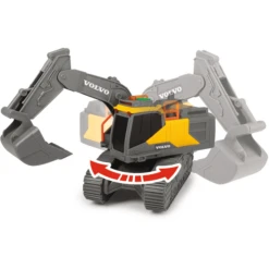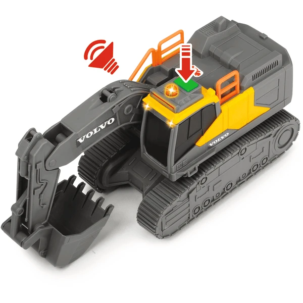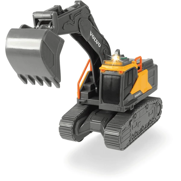 Het fascinerende aan de graafmachine op de bouwplaats is aan de ene kant de schop die de aarde en andere zaken zo precies optilt en plaatst. Aan de andere kant is het de wendbaarheid waarmee het zware materieel aan het werk gaat. De Dickie Toys graafmachine van het volvo rolmodel brengt deze elementen op een kindvriendelijke manier thuis. De schop beweegt naar links en rechts en kan precies met de arm worden gepositioneerd. Ook de bestuurderscabine draait. Deze graafmachine heeft ook licht en geluid aan boord. Kinderen vanaf drie jaar kunnen zich met al hun zintuigen in hun spel verdiepen en in de kinderkamer spannende scenes uit het dagelijks leven naspelen.