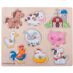 Onze puzzel “Boerderij” bevordert de ontwikkeling van de oog-handcoördinatie en helpt kinderen om verschillende vormen en dieren te leren herkennen. Compacte stukjes van hout die makkelijk op te pakken zijn. Kinderen kunnen ze eenvoudig vasthouden en de vormen op de juiste plaats zetten. Het product is gemaakt van hoogwaardig berkenhout, volledig getest volgens Europese normen en geschikt voor kinderen vanaf 24 maanden. Bovendien is het berkenhout 100% FSC-gecertificeerd en getest volgens de EN71-normen. Dit garandeert de veiligheid en de duurzaamheid van het product tijdens het spelen.
