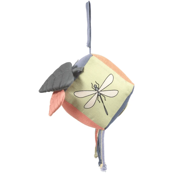 Activiteiten speelgoed geïnspireerd door de Scandinavische natuur, gemaakt van 100% biologisch katoen. De zachte kubus is ontworpen met verschillende elementen aan elke kant, waaronder een spiegel, belletje, illustraties, knisperend geluid en verschillende onderdelen die leuk zijn voor baby om aan te raken. Een fijn speeltje dat het zicht en het gehoor van baby stimuleert en ook de fijne motoriek van baby ontwikkelt. Met klittenbandsluiting aan de riem waardoor het activiteitenspeelgoed kan worden gebruikt op onze fijne speelboog, over de luiertafel of op het autostoeltje van het kind.