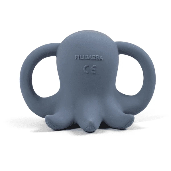 Otto de Octopus is een schattige handgemaakte bijtring gemaakt van 100% natuurlijk rubber.Het schattige gezichtje bouwt snel een band op met het kind en zijn Design zorgt voor een goede grip, zelfs voor zeer kleine handjes.Er zijn kleine puntjes en groeven op het oppervlak en alle randen zijn zacht zodat ze pijnlijk tandvlees kunnen verzachten en tegelijkertijd de tastzin stimuleren. Een geweldig product voor de ontwikkeling van de fijne motoriek van een kind.Omdat de bijtring handgemaakt is, kan het uiterlijk iets afwijken van de foto.