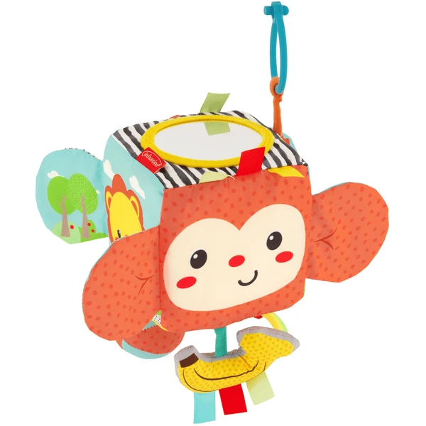 De leuke kubus biedt uw kind ontdekkings- en zoekflappen met een grappig knispergeluid, die versierd zijn met levendige dierenafbeeldingen en een jumbo-spiegel. De hangende rammelaarbal en de clackerringen zorgen voor veel speelplezier. Deze bieden uw kind een akoestische en visuele ervaring.