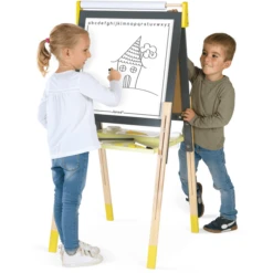 In hoogte verstelbaar van 91 tot 126 cm. Schrijfoppervlak: 47 x 47,5 cm.
