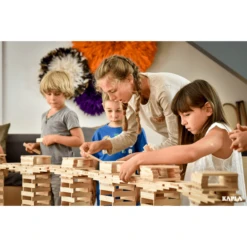 Door de plankjes te stapelen kun je de mooiste bouwwerken maken. Kapla latjes
