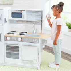 Kook je lievelingsgerecht met de witte Uptown keuken. Met deze speelkeuken kan je kindje koken zoals mama en papa
