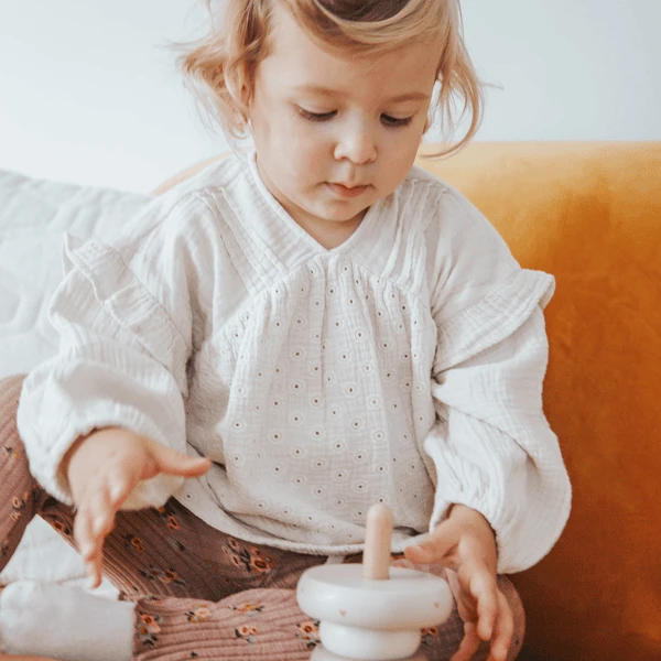 - De houten ringen en het bovenste blok zijn gemakkelijk vast te pakken voor kleine handjes.
