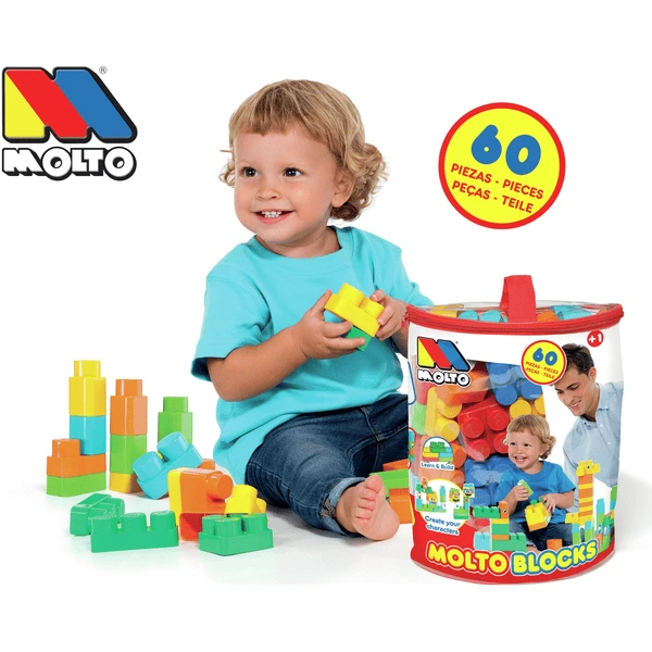 - Bouwsteentas met 60 bouwstenen in verschillende kleuren