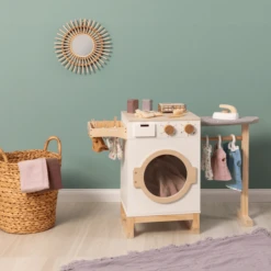 Samen het huishouden doen geeft dubbel zoveel plezier. Het wascentrum past perfect bij de MUSTERKIND ® speelkeukens “Linum” & “Magnolia”.
