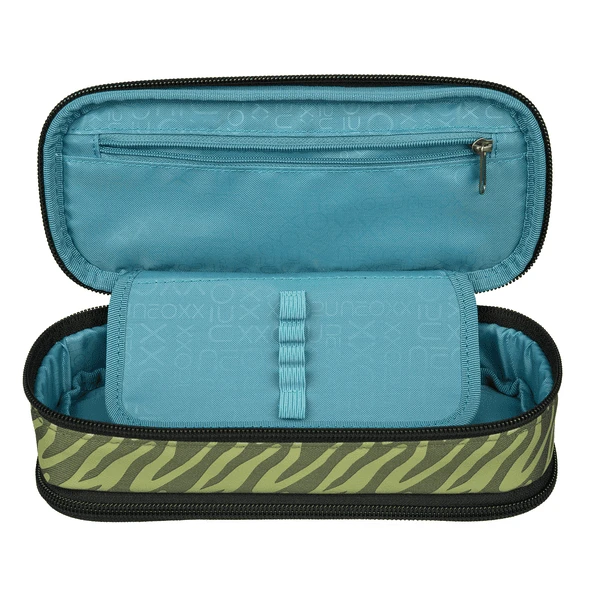 - Bovenvak: veel ruimte voor pennen, lijm enz. en klep met 5 pennenzakjes en vakje met rits voor notities, kleingeld of soortgelijke zaken