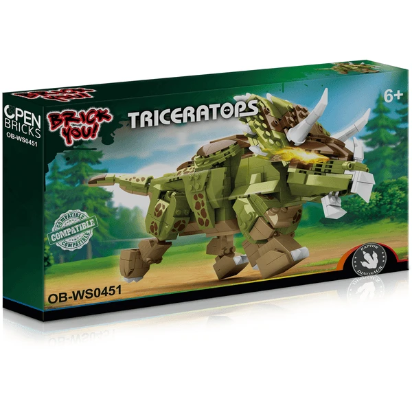 - Open Bricks Triceratops kit met 442 onderdelen.