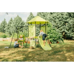 moet regelmatig worden gecontroleerd (schommel, kettingen, ladder, enz.). Als