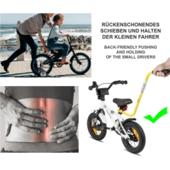 Het voldoet een korte druk op de handvat om de richting van de kleine racer te bepalen of te corrigeren. Geef je kind het veilige gevoel net als bij het leren lopen! In het begin loop je met de stang tegelijk, later loop je gewoon met je kindje mee en houd je hem veilig met de stang.