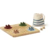 - Aan het begin worden in elke kokosnoot zes apen van één kleur verstopt en op de vakjes van het ronde speelbord geplaatst.