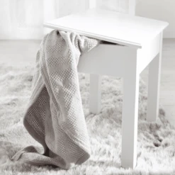 Kleine prinsessen kunnen hun kostbaarste schatten gemakkelijk verbergen in het geheime vakje van de kruk dankzij het uitklapmechanisme. De kaptafel met spiegel en lade biedt voldoende ruimte voor make-up, kappersspullen en alle noodzakelijke gebruiksvoorwerpen zoals cosmetica, sieraden en toiletartikelen.