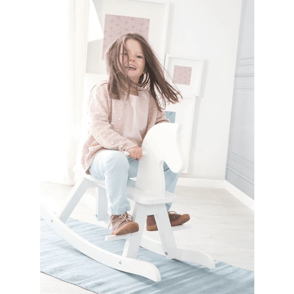Het roba merkproduct met een totale hoogte: 55 cm, lengte: 82 cm, diepte: 43 cm (zithoogte: 27 cm) is geschikt voor een gewicht tot 25 kg. Het schommelpaard, wit geschilderd, wordt gedemonteerd geleverd. De montage is zeer eenvoudig. Alle gebruikte materialen zijn getest op schadelijke stoffen en gecertificeerd. Bovendien worden ze regelmatig gecontroleerd tijdens de productie. Alle oppervlakken zijn veegbaar en gemakkelijk te reinigen.