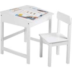 In het rollenspel “School” leren kleuters op een speelse manier hun dagelijkse schoolleven kennen met het bureau en de stoel van roba. Je kinderen kunnen al vanaf jonge leeftijd comfortabel op dit stevige kindermeubel zitten, want de zithoogte is 31 cm. Bureau: (H x B x D): 58 x 55 x 49 cm; Stoel: (H x B x D): 59 x 29 x 29 cm, zithoogte: 31 cm, klep met demping.