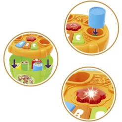- Ontdek samen met je ouders de wereld van vormen en kleuren met dit spannende muzikale insteekspel.