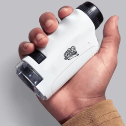 Word een microbioloog en beleef thuis spannende biologielessen. Kinderen ontdekken piepkleine organismen en zien dingen die voor het blote oog verborgen zijn met een vergroting van 120x door de lens van de microscoop. Ze duiken in de wereld van cellen, bacteriën en de kleinste organismen en ontdekken hoe hun structuren eruit zien.