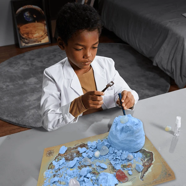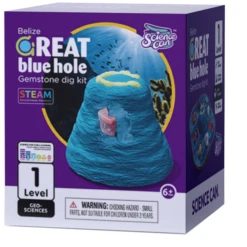 Oh, wat fonkelt het mooi! Kinderen gaan op schattenjacht met de opgravingsset Gemstones from the “Great Blue Hole” in Belize van Science Can en graven als echte geologen prachtige edelstenen op met hamer, beitel, kwast en co. Het speciale eraan: Al doende leren zij ook over spannende natuurspektakels en natuurverschijnselen van deze wereld.