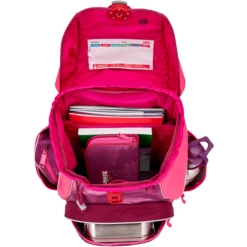- De retroreflecterende vlakken en de extra fluorescerende waarschuwingsvlakken in roze volgens DIN 58124 zorgen voor een bijzonder veilige reis naar school.