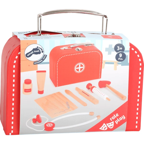 Met de dokterskoffer verzorg je poppen, knuffels, vriendjes of vriendinnetjes. Maar ook een huisbezoek bij opa en oma is altijd mogelijk. Alle belangrijke medische instrumenten passen in de koffer. De spuit heeft een pompmechanisme en op het notitieblok schrijf je alle belangrijke zaken op. Nu alleen nog wat medicijnen en het gaat al snel beter met de kleine patiënt.
