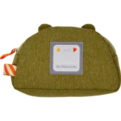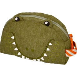 - Betoverende, groene alleskunner in krokodillenlook met toegepaste ogen, ritssluiting en mooi borduursel.