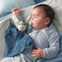 Deze knuffeldoek “Träumli” Set Donkey Emmi by Sterntaler bestaat uit zachte mousseline fleece en poly cotton met borduurmotief “Träumli”. Een dummy-band is ook inbegrepen. De fopspeenband past op alle fopspenen, met of zonder ring. In de leveringsomvang zit naast nog een klein luierdoekje. Het perfecte cadeau voor de geboorte of de doop.
