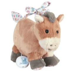 Bindende banden zorgen voor een eenvoudige bevestiging aan bedden, kinderwagens of in de auto. De aangehechte rits maakt het gemakkelijk om het speelgoed te verwijderen en het figuur is gemakkelijk te wassen.