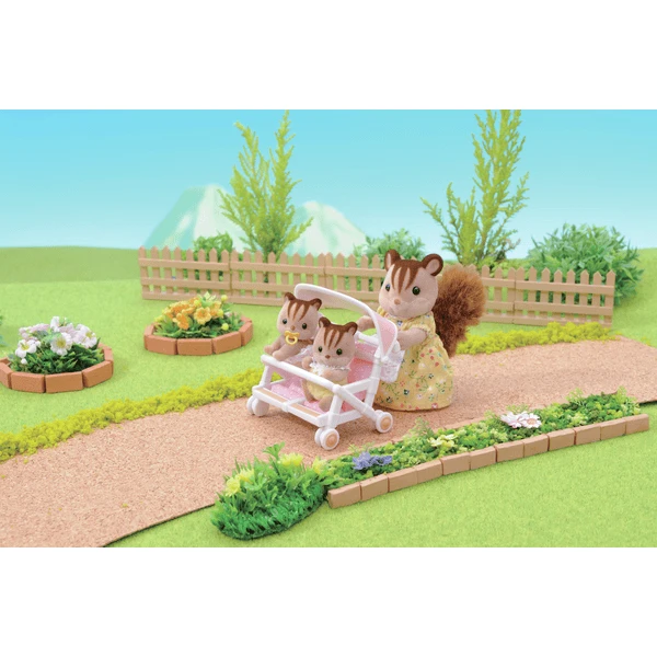 Dankzij het zonnescherm en de ruime wagen, kan mama elke dag met haar tweeling wandelen.