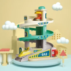 De lift kan op en neer worden bewogen door aan het wiel te draaien. Als de auto de top bereikt, glijdt hij terug naar beneden. Motorische vaardigheden, oog-hand coördinatie en het visueel volgen van voorwerpen worden zo optimaal getraind.